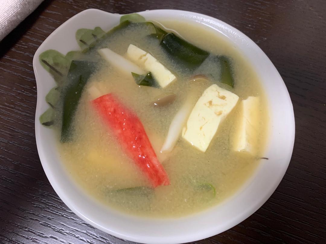 哇,今晚解锁了味噌汤,把冰箱里搜刮出来的豆腐、蟹肉棒、海带结、蘑菇、瑶柱、裙带菜都放进去煮了,那个滋味真是不要太棒哦!平时都是在外边吃饭时喝一碗味噌汤,咸得跟不要钱似的,都不爱喝,没想到自己煮味道那么赞哦。第一次尝试,只买了盒普通的味噌汤酱,这一大盒酱才两百来日元折合人民币不到十五块,这个量估计够煮一个月了。改天再去买盒更好的试试。谢谢作者分享这么棒的方子!