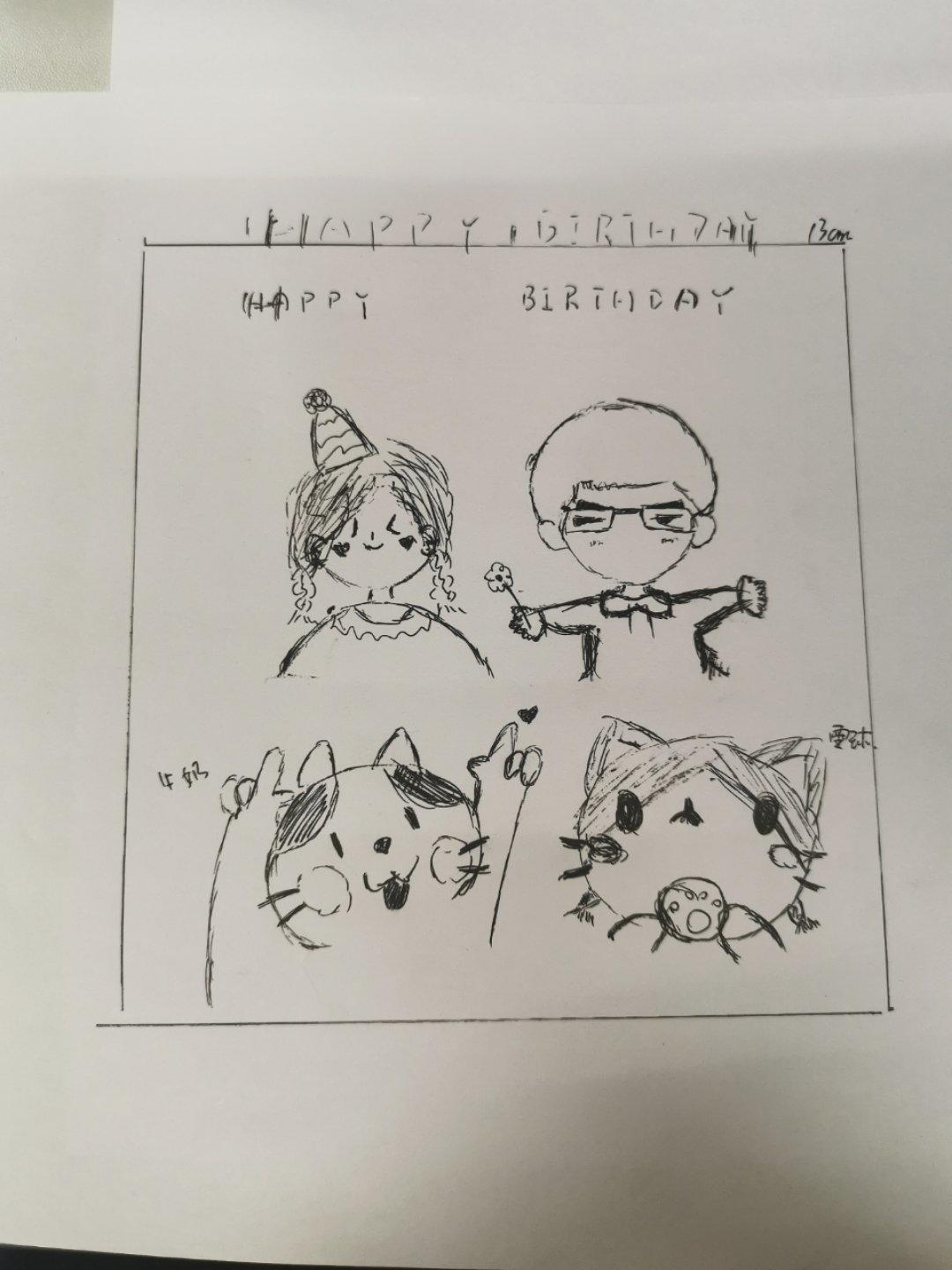 本来想彩绘应该会很可爱,但是小辛想要平平整整简洁的简笔画风格,和花花倒是配一脸了