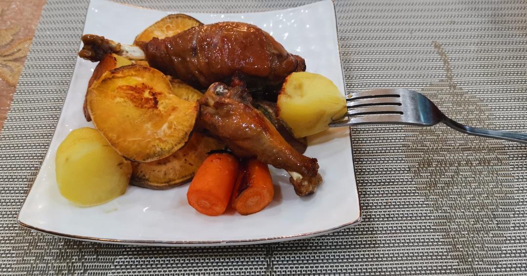 停电,爬了18层楼,晚上自己在家烤鸡腿。基本按这个方子,没放胡椒粉,还不错~