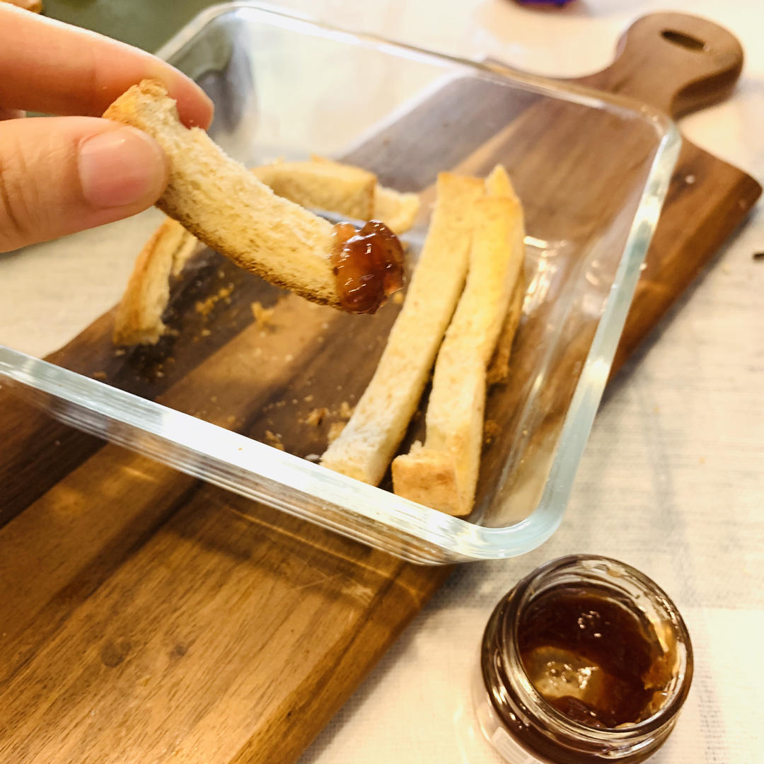 Qiuuuuue 做过 2019年06月15日 剩下的面包边,烤箱烤大概15分钟,蘸酱吃,酥酥脆脆,好惊喜 土豆泥三明治🥪,最上面一层由于煎过,有点焦了,建议不要煎,把一层土司夹上芝士放烤箱烤化,然后再加土豆泥和午餐肉合并。 2019-06-15