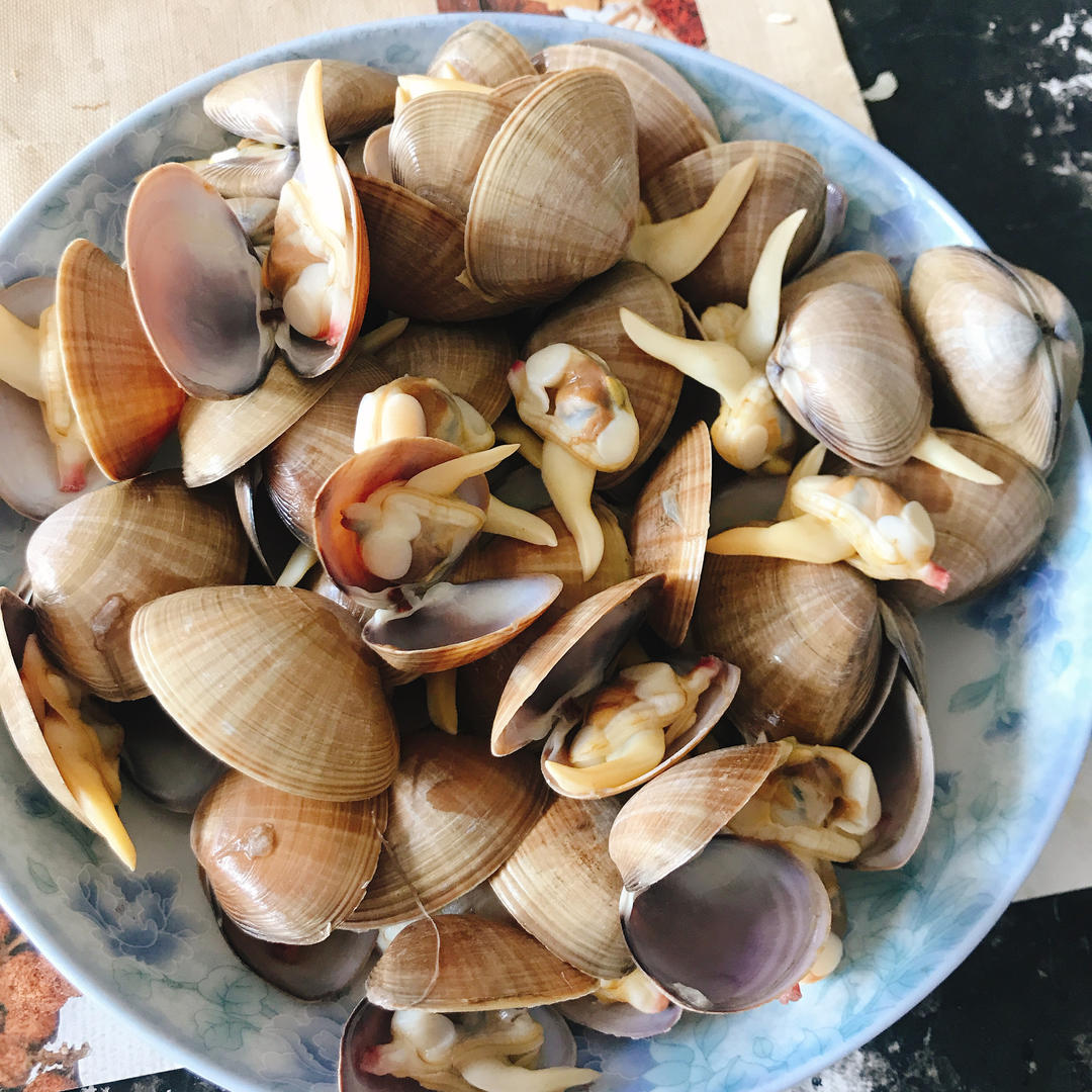 老爸一清早买的黄蚬子 够我吃一天的了 坐了三种不同吃法😉白灼鲜鲜的 沾上酱油和陈醋停不下来~