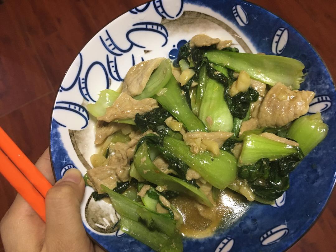 油菜炒肉片,少放盐
