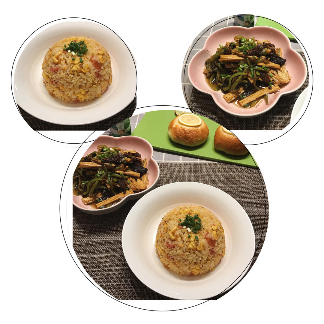 昨天晚自习回家就喊饿,吵着要煮面吃,好不容易阻止了,那今天早上就吃炒饭吧!
