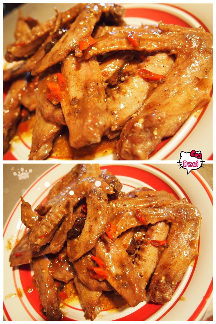 鸭翅肉感好Q哦。加了点小辣椒。麻麻辣辣。配上冰啤酒赞哦!!