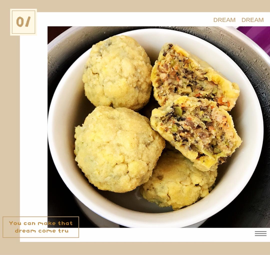 竹林微风l 做过 我的低脂健康减肥瘦身餐(掉秤挡不住~☻) 馅:西蓝花,胡萝卜,蘑菇,木耳,鸡肉,鸡蛋,葱花。调料:十三香,蚝油,黑胡椒,盐,香油一丢丢。把馅拌好,捏成团,在玉米面里滚一下,拍上水再滚,连续三次,放锅里开锅蒸6分钟,闷一会出锅,味道好极了~#午餐•2019年12月5日# 2019-12-05