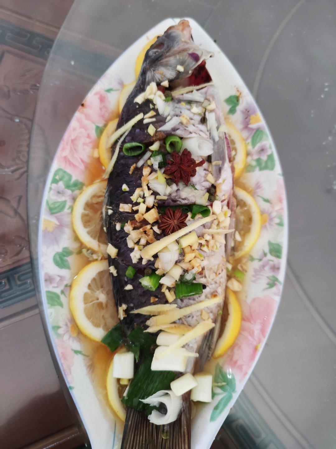 柠檬鱼,鱼最重要呀,最好用鲈鱼或者清江鱼,适合清蒸的那种,我用的是鲤鱼,味道依然很棒,不是特别软,但手压柠檬,很好玩。