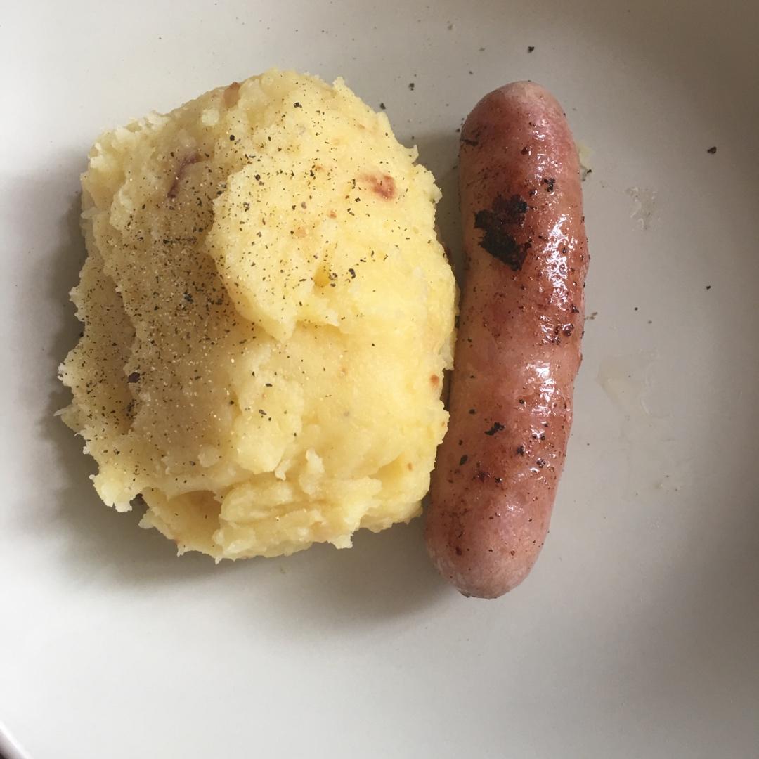 炒土豆泥1个 ➕冰黄油3-5块 ➕热牛奶一小杯 撒盐或黑胡椒