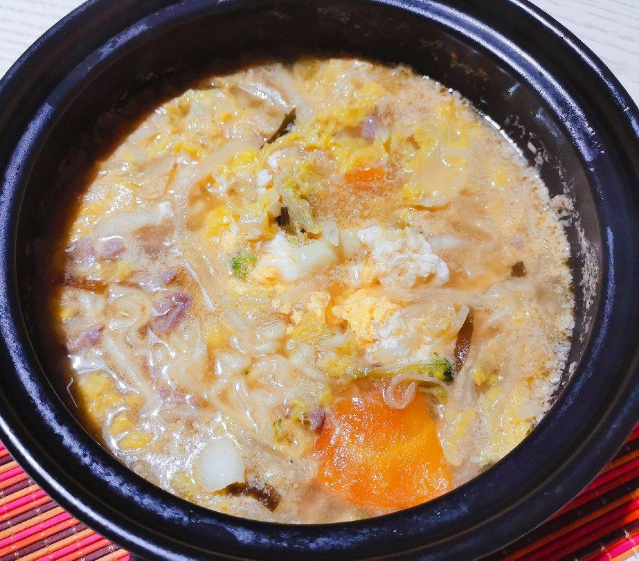 肉放生抽生粉盐腌制,砂锅放油炒下加水烧开放白菜面,水开放鸡蛋,再焖几分钟