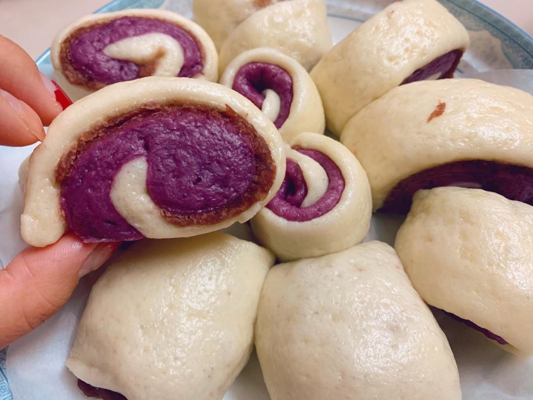 给老爸做的早餐,随便撸豆沙双色馒头
