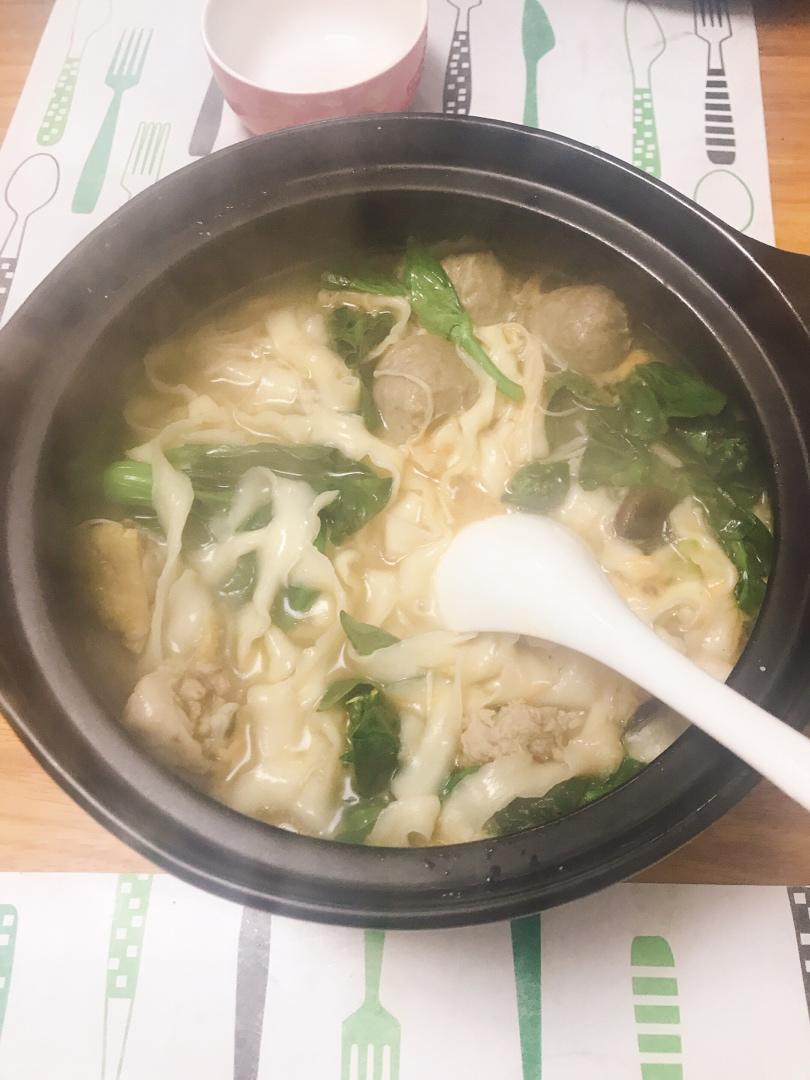 热乎乎的砂锅面,可惜买的米线还没到,下次可以尝试一下砂锅米线了,加了丸子青菜鸡汤,很鲜,好吃😋