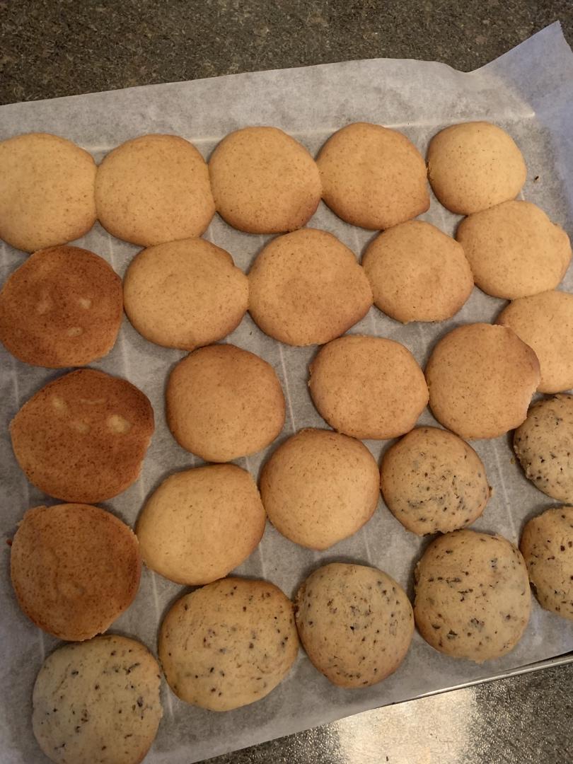成功😋非常好吃,用了减半的黄油,一个鸡蛋,70糖,黑色带点的放了一小袋咖啡,味道出奇的好吃😋有点像奥利奥🍪