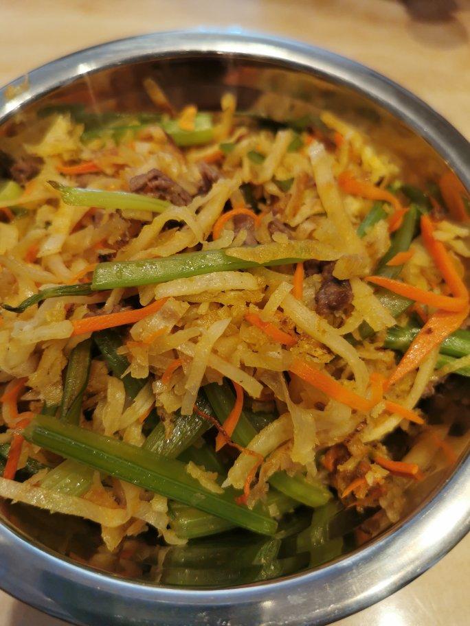牛肉芹菜胡萝卜炒饼丝