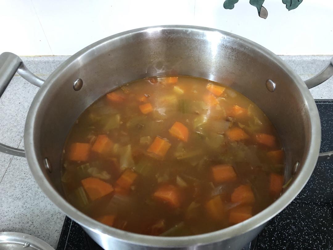 依然微笑饼干 做过 2020年03月16日 中餐做得多尝试一下西式汤水,广东人会煲汤可是用的多半是猪骨汤,鸡,鱼然后放各种药材或者瓜果熬成,罗宋汤看似没广东的汤有营养吧,其实大家都错了,她的营养可丰富啦,就连色彩都这般五颜六色 2020-03-16