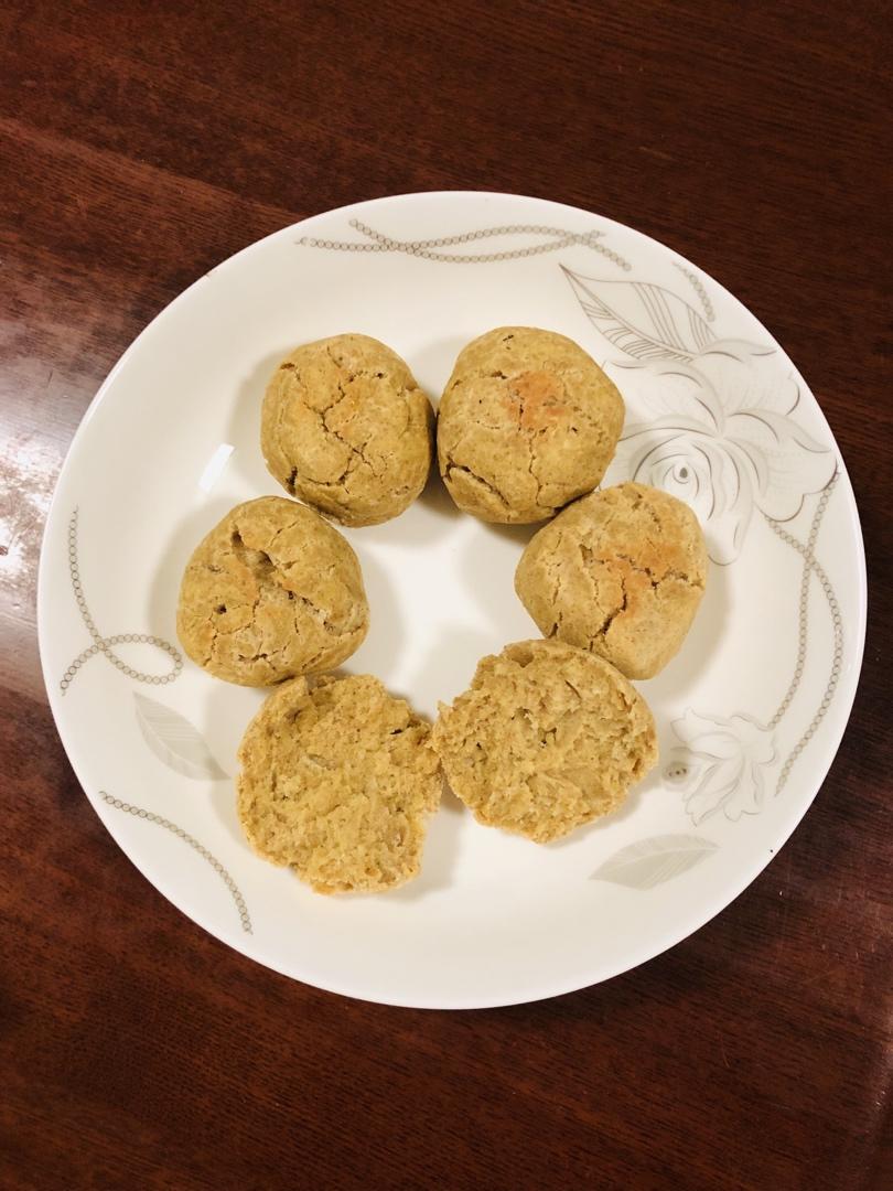 噎得慌,口感不错。一半椰子粉+一半亚麻籽粉,无水,3个鸡蛋