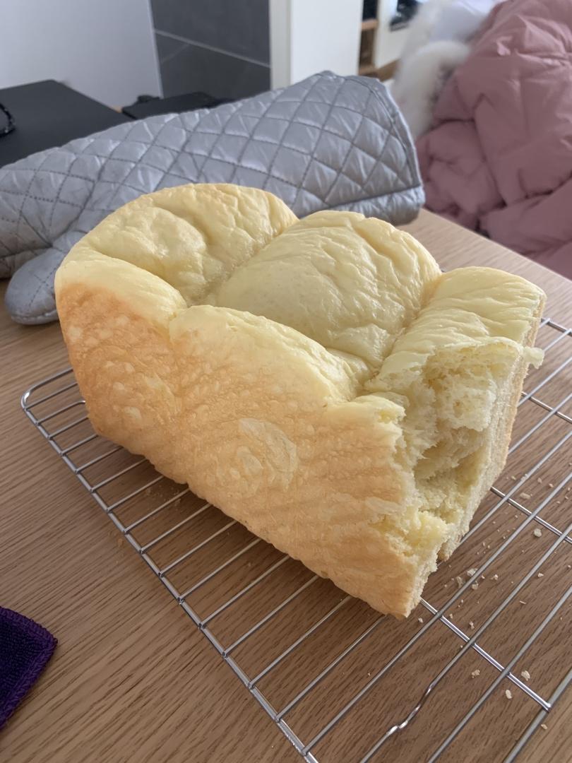 娜娜娜娜酱 做过 纯奶手撕吐司 三个小时都只发到5分满 太难了 不知道是不是酵母活性不太行了……然后没管它直接睡了一晚 早上起来 已经高出模具,盖不了盖子 ,我就蒙上锡纸风炉160度中下层40分钟 拿出来这个鬼样子样子 全程锡纸导致上温不够,然后过长时间的发酵面筋老化组织粗糙,失败的透透的,想把它扔了下次再刷 2020-03-23