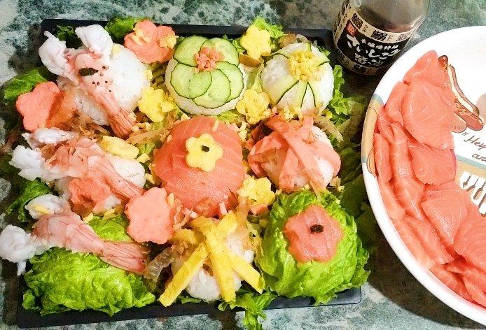 ひな祭りじゃないけど〜偶に手まり寿司を食べるのも良い気分になる〜(*´▽`*)