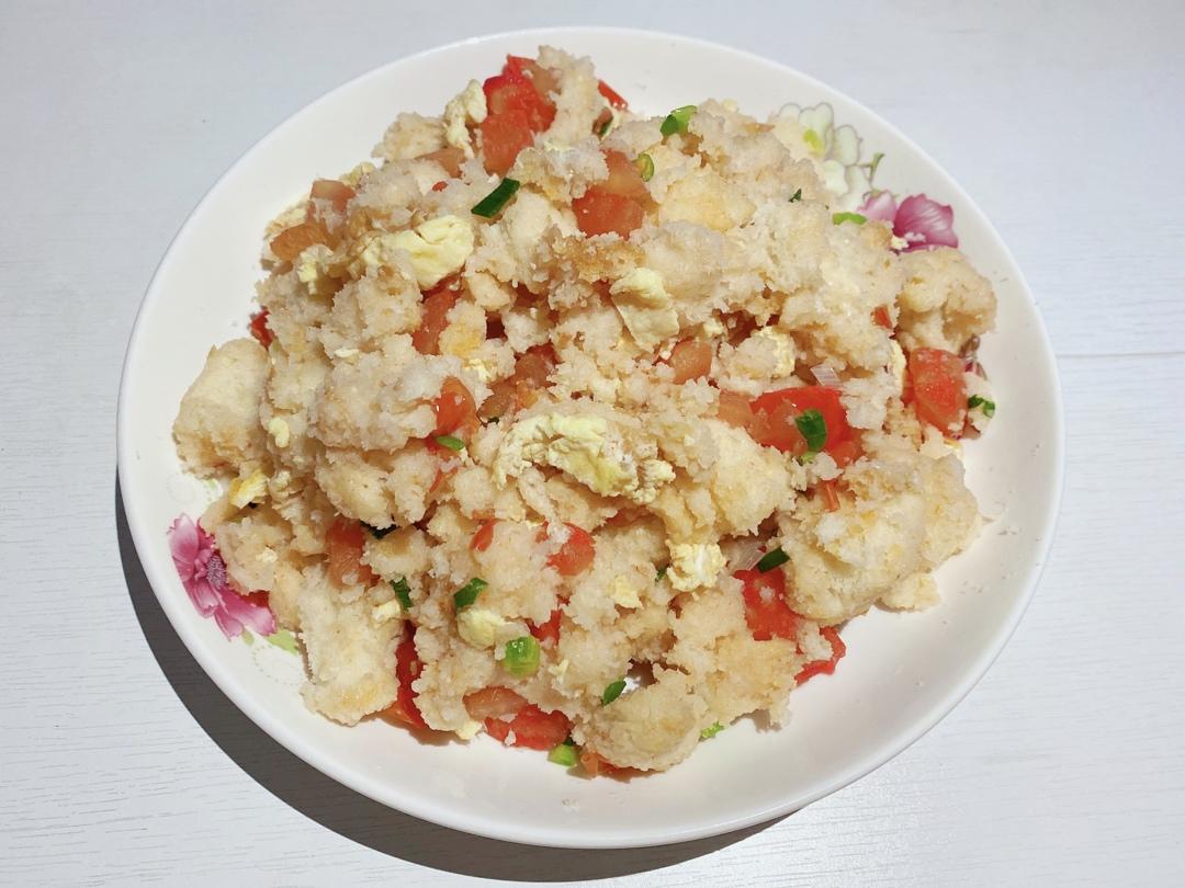 西红柿蛋炒馍花撒上葱花,一个字香!