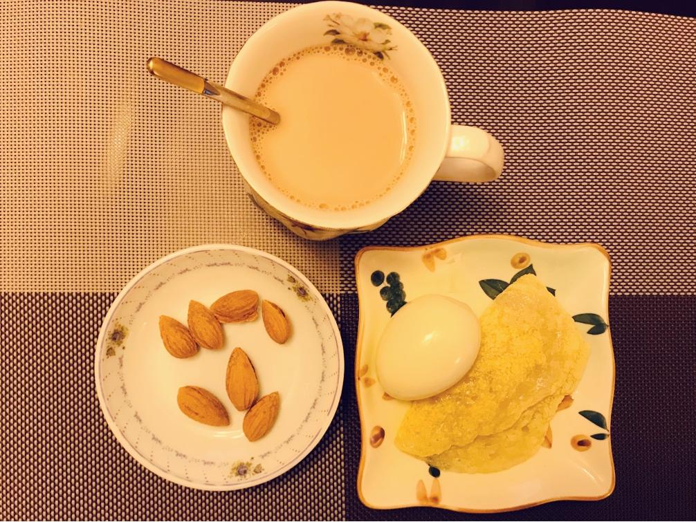 CHM1966 做过 早餐•2020年4月3日 #早餐•2020年4月3日# 温州。今天早餐简单化。因警察叔叔要住院鼻息肉术前各项检查。他先去医院空腹检查,我随后带上鹅蛋、内蒙古奶茶奶片和八颗剥好的巴旦木随后送给他,然后签字,准备周一手术。㊗️手术一切顺利,平安❤️🙏🙏🙏 2020-04-03