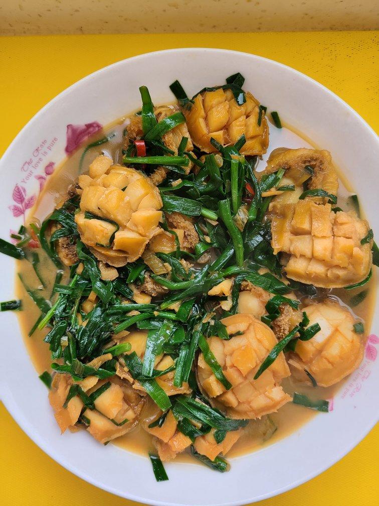 按照红烧的做法,最后快出锅的时候扔了把韭菜进去😊