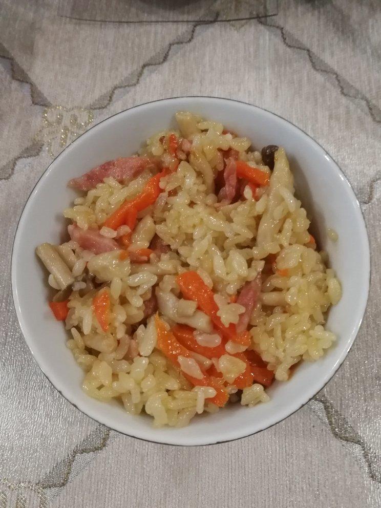 涵雨嫣 做过 一口气能吃两碗❗日式蟹味菇煲饭(来自一位日本老婆婆的方子.附有味啉和荞面汁制法) 蟹味菇,胡萝卜,香肠热锅炒一下,炒出水份,加调料后放大米,少放水,电饭煲煮饭就Ok。 2020-04-08