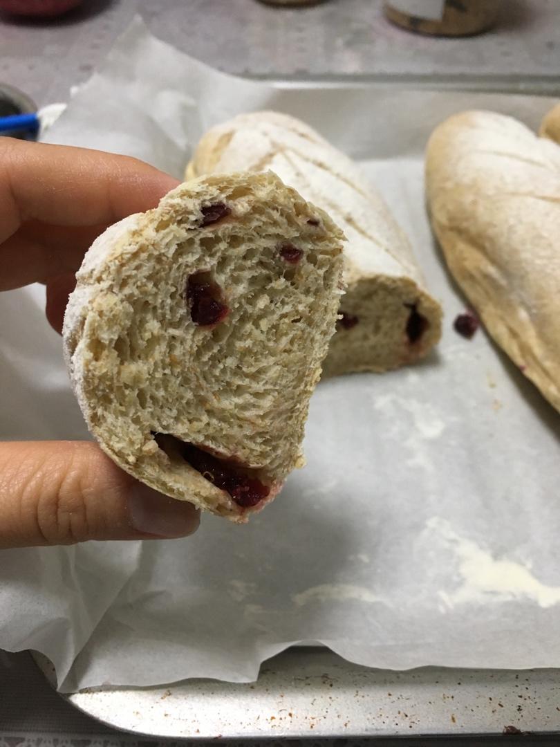蔓越莓全麦面包,刚出炉味道不错!还有紫薯肉松馅,也超好吃,不知道凉了怎么样!