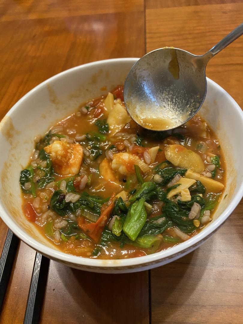 小灰狼siqi 做过 实战篇 | 2号模板—减脂期—下午锻炼 #小灰狼的健康瘦日记# #晚餐•2020年4月12日# 两人份,生米+糙米一共75g,煮熟后一半加入泡饭中,吃完觉得饱腹感很强,肚子微胀,持续观察中 2020-04-12