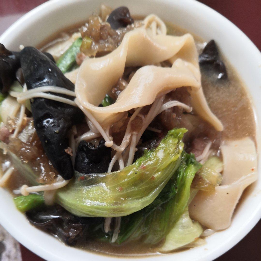 临时决定做烩面,没有千张和还带,用木耳和金针菇代替,配菜嘛自己喜欢就好,还加了自己炸的素丸子,味道很不错☺️☺️☺️