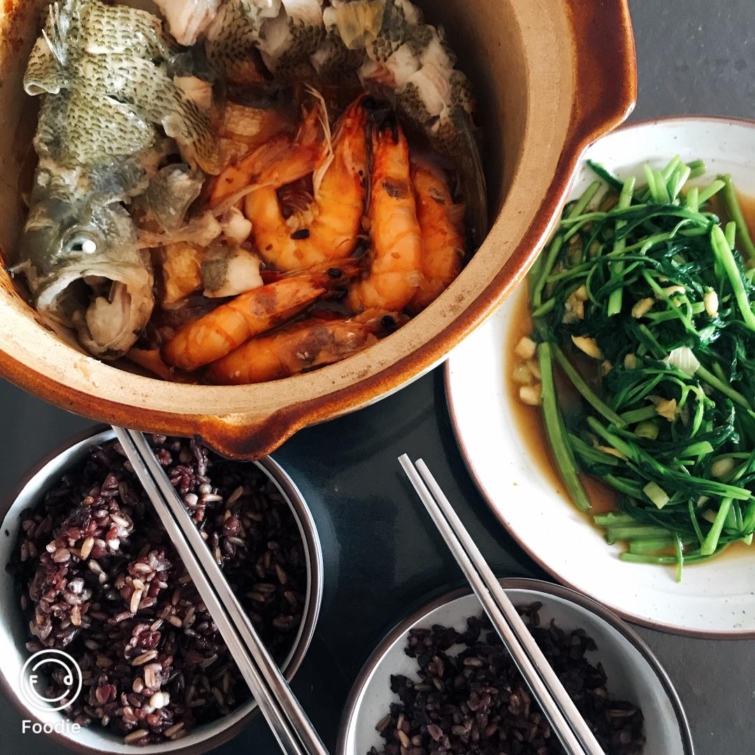 砂锅焗鲜虾鲈鱼
