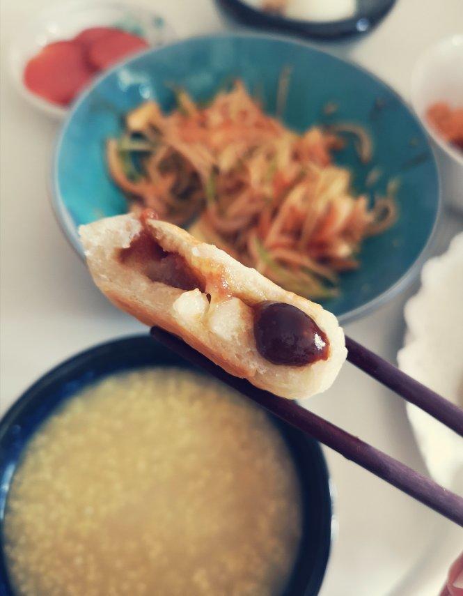 野馄饨_x39a 做过 早餐•2020年4月19日 红糖&黑芝麻想吃菏泽的炸糖糕了所以用的烫面但没有用油炸而是少油煎的口感偏硬可能水少了或者是小火煎的太久红糖馅是用面粉白糖加红糖浆调的黑芝麻馅用的面粉白糖加黑麻酱总结:红糖的好吃#早餐•2020年4月19日# 2020-04-19