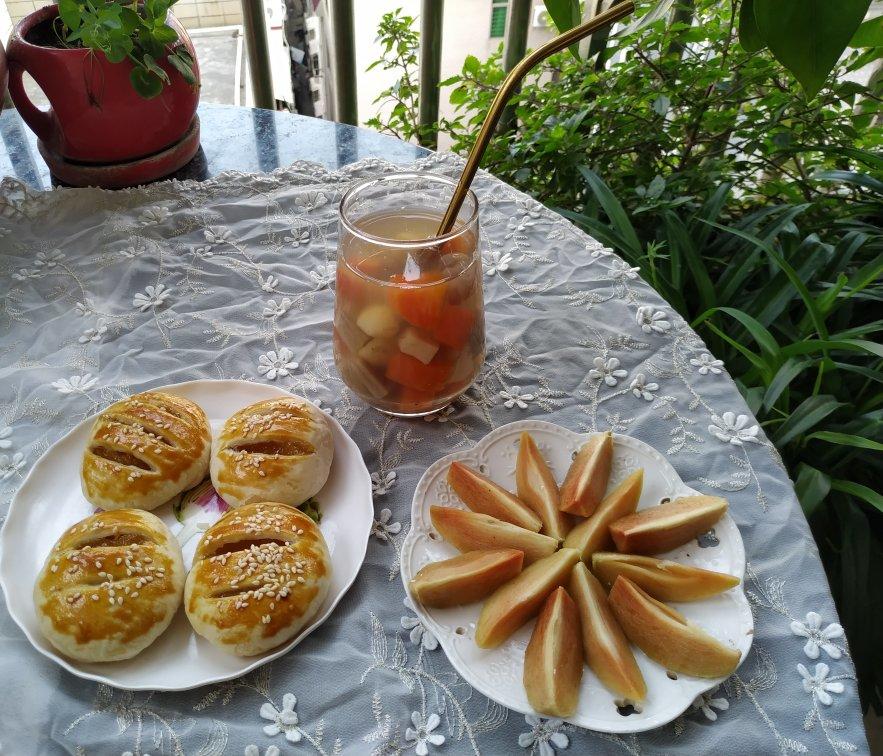 菠萝馅老爸也爱吃,甜甜酸酸,再来份自家种的人参果,好甜