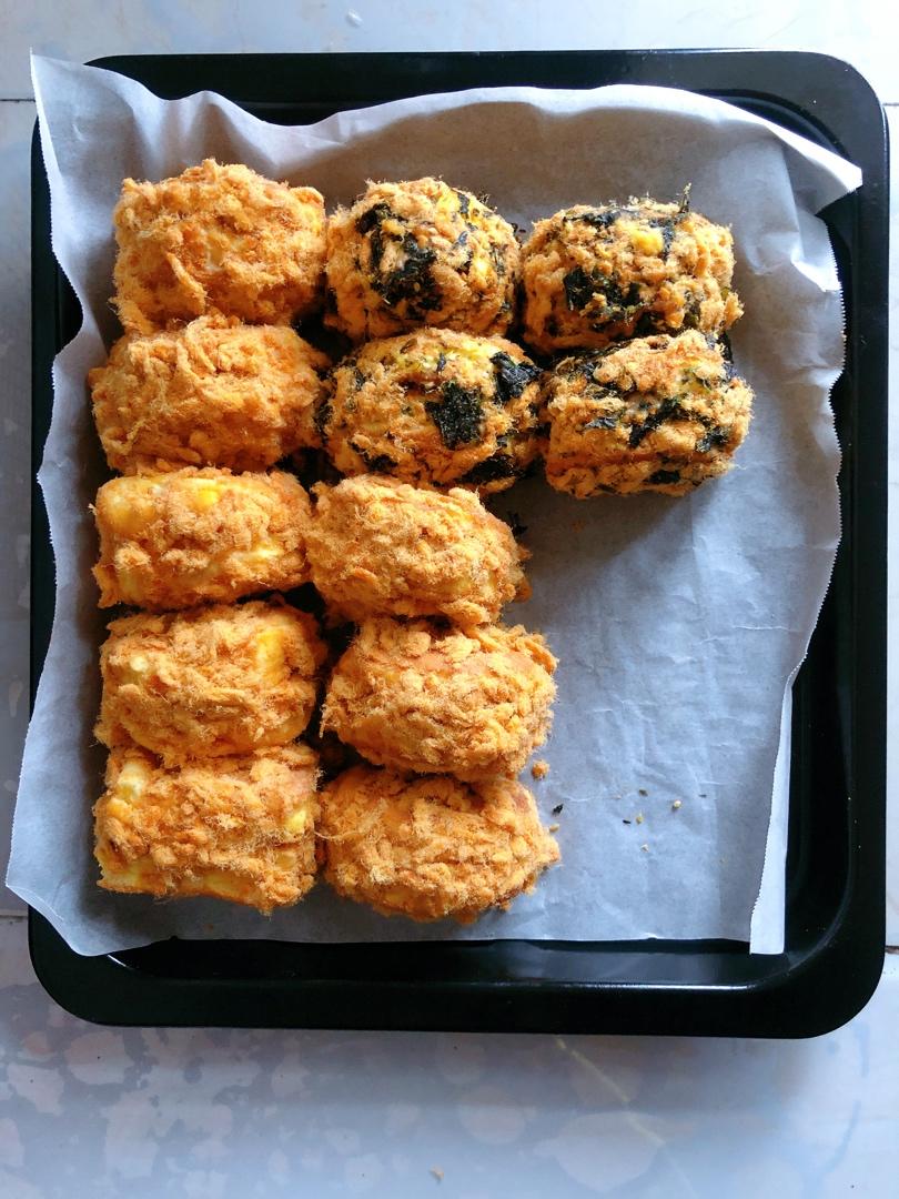 LY-7J 做过 肉松小贝蛋糕 LY自制~~肉松小贝(肉松和芝麻海苔肉松)[嘿哈]~朋友推荐的方主的方子来交作业!😂烤了一烤盘蛋糕胚~切小长方型再切掉2个角成梯型,涂了点算低卡的卡仕达酱~沾了肉松~看着还挺像那么回事😂 2020-04-19