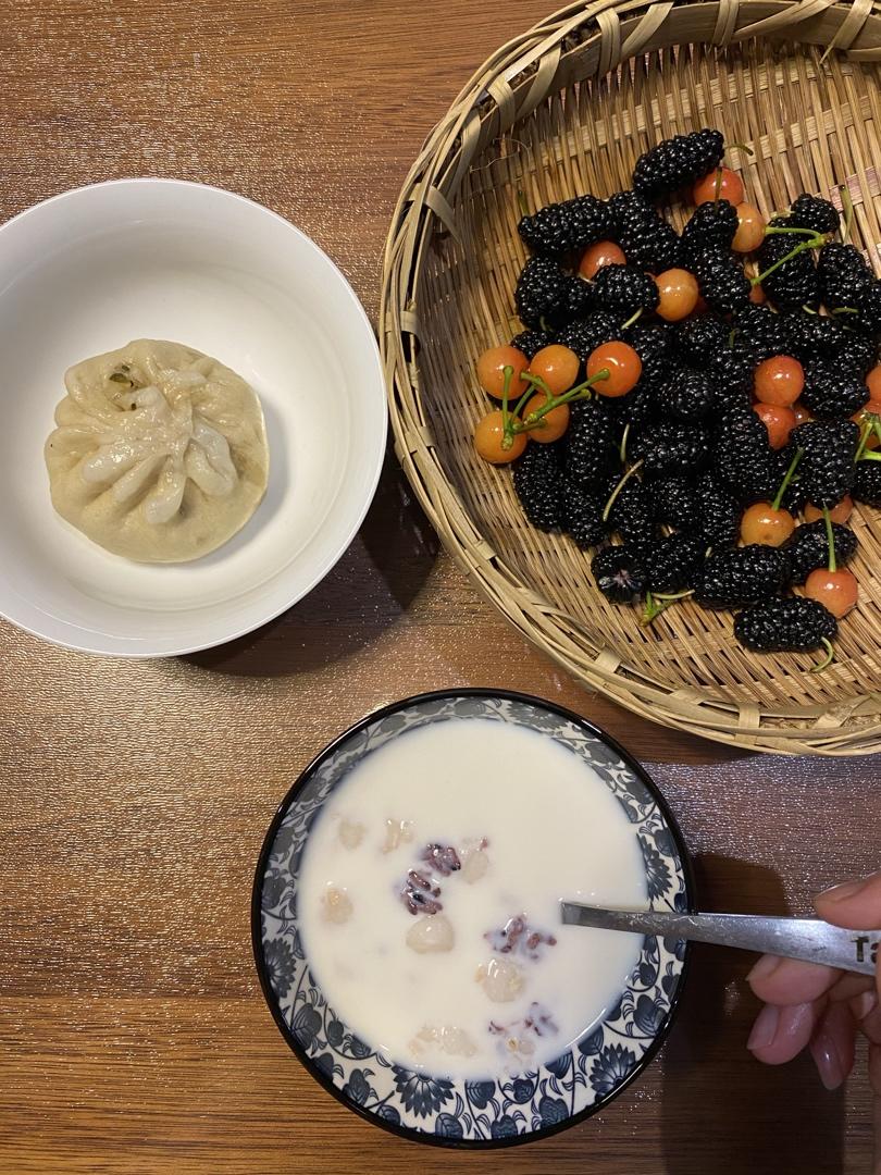 难得在家能好好慢慢的吃个早餐,樱桃是昨天自己亲手摘的,真甜。