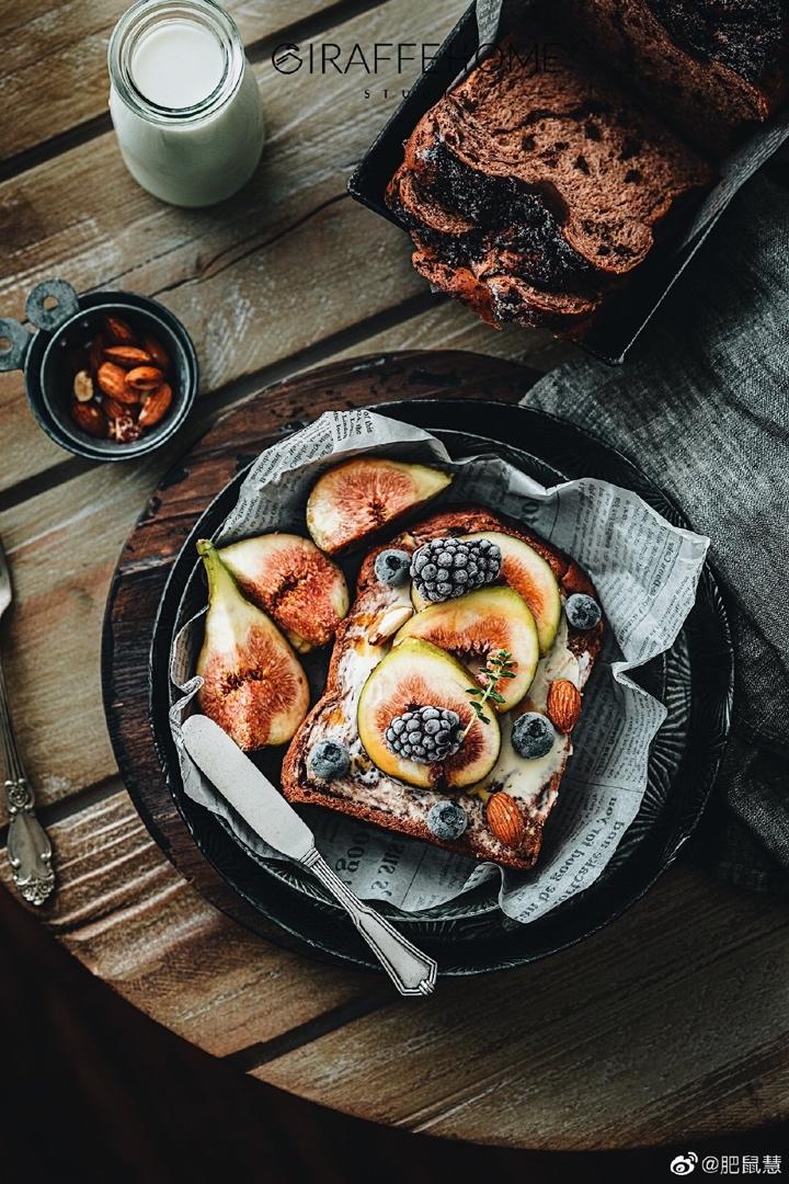 「无花果巧克力开放式三明治」「鲜牛奶」