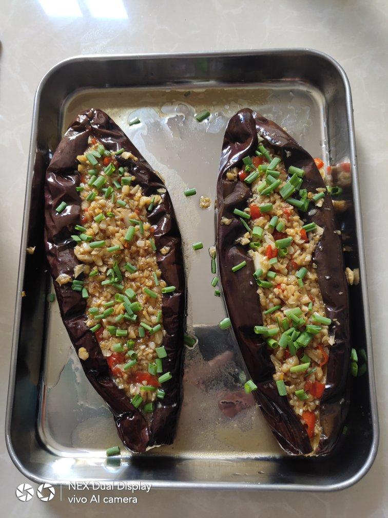综合3家之精华自己又改进了下:2个茄子用空气炸锅烤20分钟,蒜蓉配料用油爆香,放微波炉烤3分钟即可,味道不错