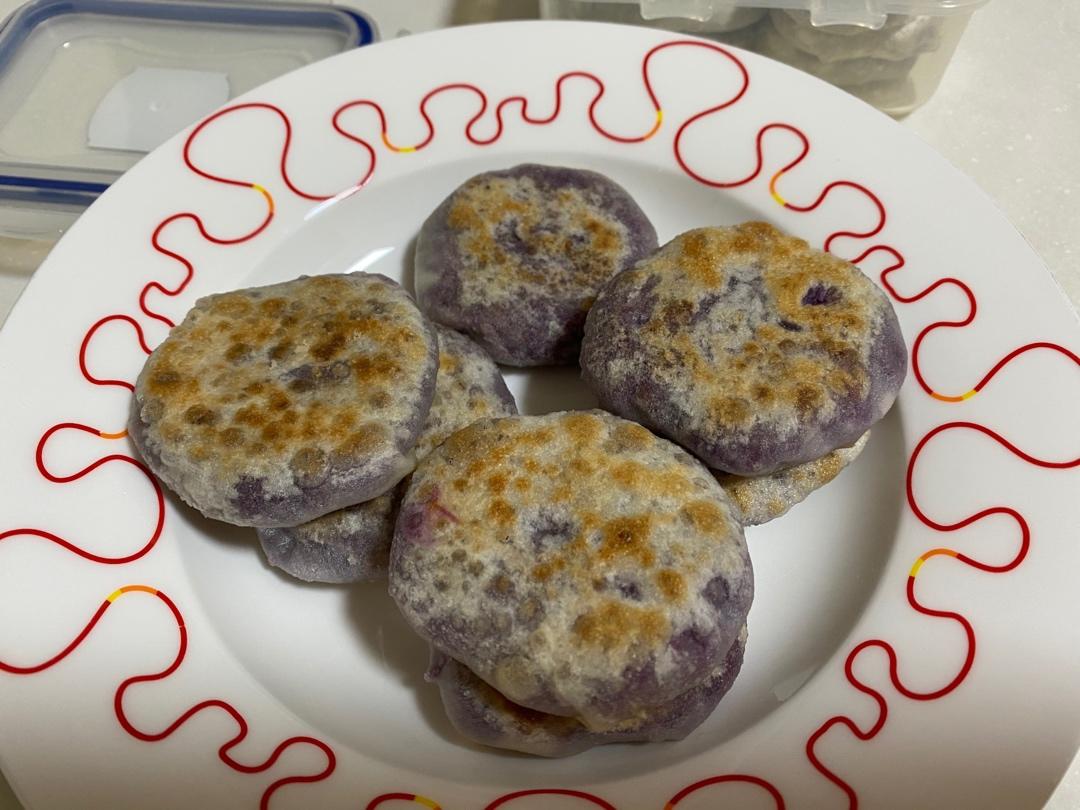 超快手不揉面不放油的低脂奶香紫薯饼