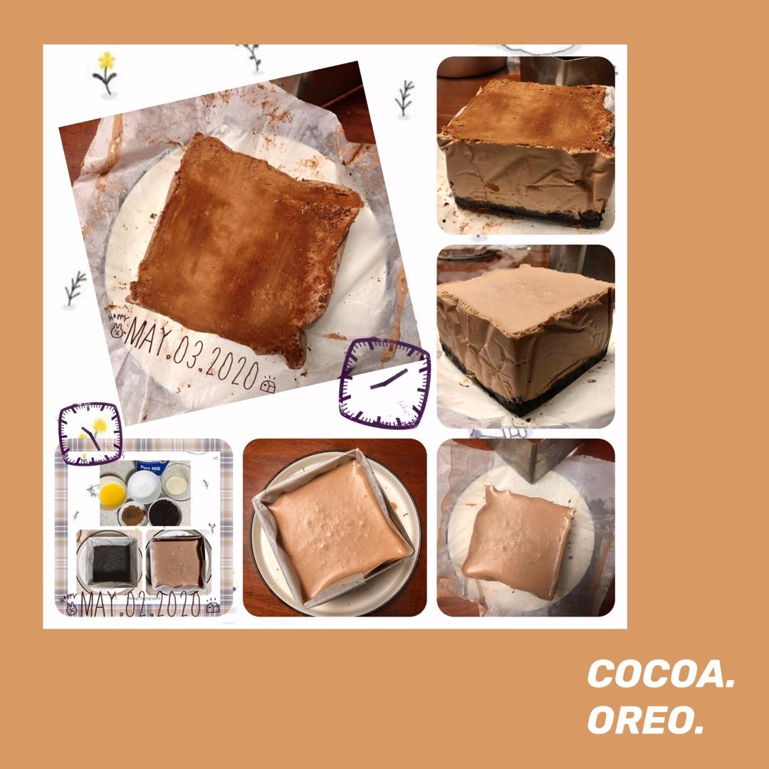 茶沵花汋 做过 4寸可可慕斯 第二次練習做了可可~ 樣子依然醜 但味道可☺️繼續改善總結:1⃣️要記得吉列丁粉兑水比例.2⃣️要學習墊油紙的技巧.3⃣️Practice makes perfect👏🏼 2020-05-03