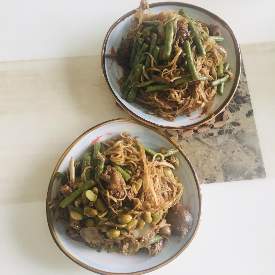 用了现成的毛豆烧鸡 忘了挂面是闲的 味道有点重了 可是还是好吃的😋