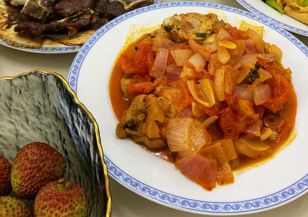 1年5本食谱100道菜,之20:番茄H酒炖鸡