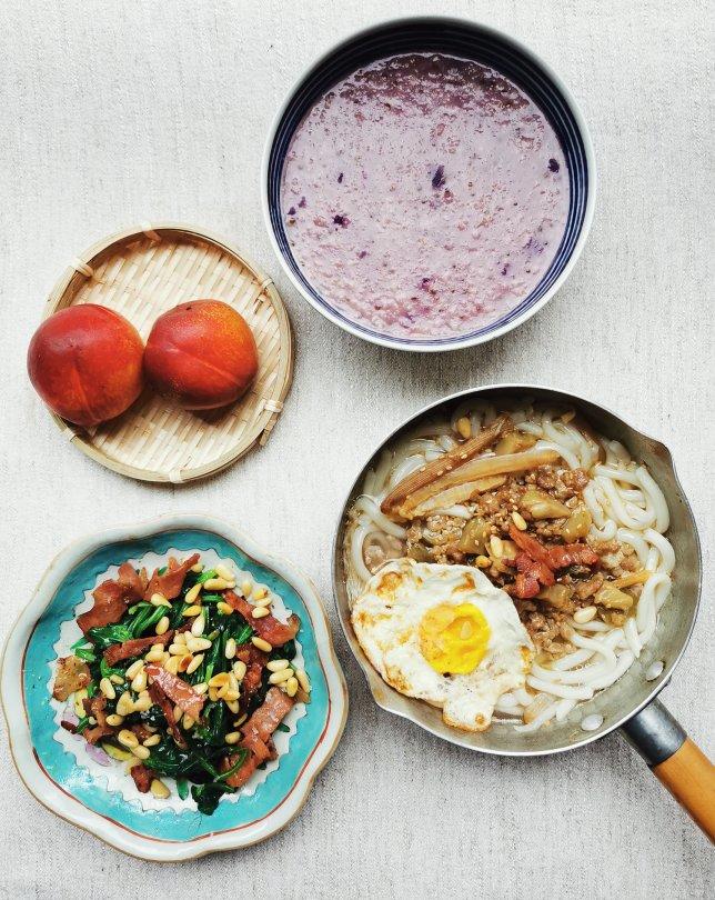 压得透不过气的天气,昨天肠胃不适,头重脚轻,下午坚持着带小学生去检查视力,晚上熬到他打完球开始发冷发热,直接倒下了。今早起来略有好转,但是感觉低热,还好校门口没有测到体温异常。早餐是临时想法,因为老孙昨晚值班,把原来计划煮粥的沙虫干用来煮汤底,瘦肉炒榨菜,给kk煮一小锅乌冬,拌一个培根菠菜沙拉。我养生壶煮点紫薯粥,喝了几口吃了药匆匆回学校上班了。我这种老病号虽然已经身经百战,每次不舒服最难受的其实是那种情绪上的无力感,那种提不起劲的状态还是把人击垮,功力还是不够啊。