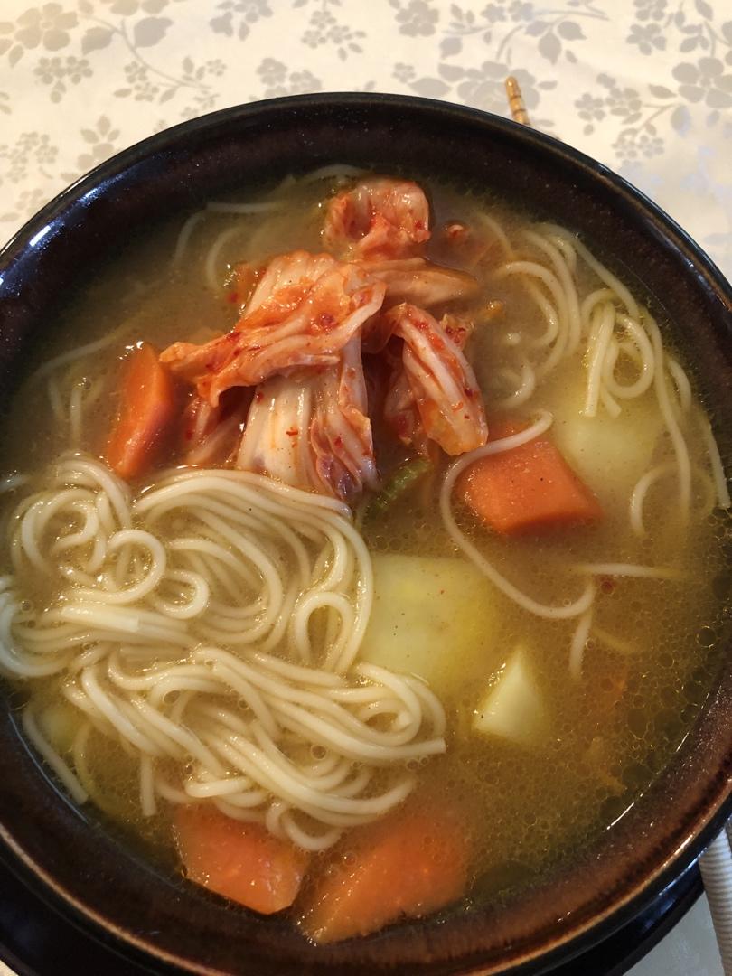 咖喱鸡肉面。。。糯米肉丸和美极椒盐虾