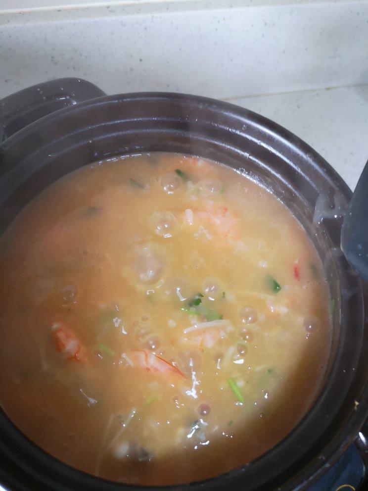 甜点小姐y 做过 完爆大排档的潮汕砂锅虾粥! 用的是焖好的米饭1碗,因为喜欢吃虾,放了足足1斤,收拾虾就弄了很久很久(虾也是第一次收拾),除了虾和干贝,还放了黄蚬子和蛤蜊,这两种都事先稍微煮下,把肉抠出来,洗干净沙子,最后下锅的。另外没有放胡萝卜或者雪菜,放了切成小段的金针菇。粥煮出来后真的是非常的鲜甜,完胜吃过的各个潮汕砂锅粥铺。 2020-05-19