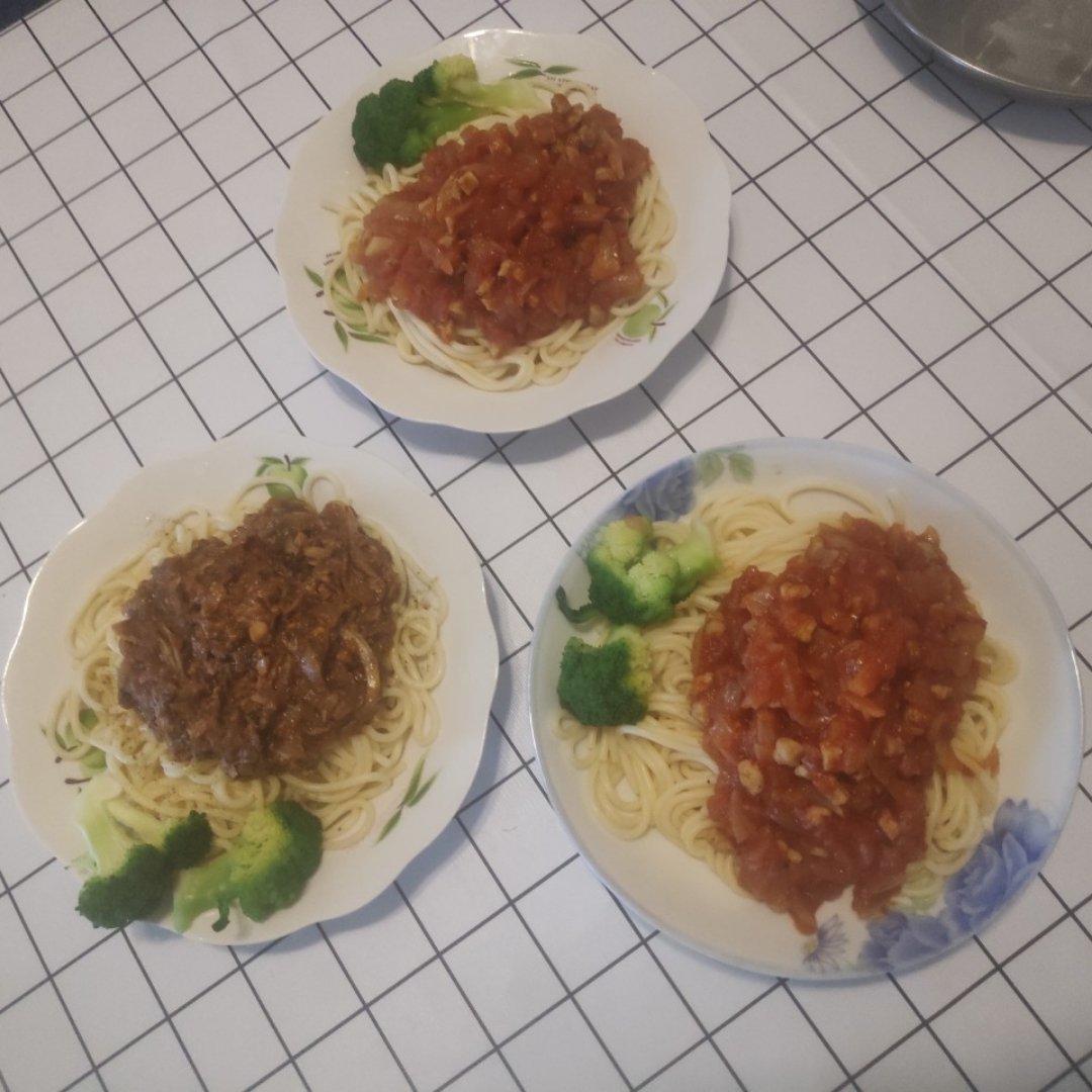 虽然没有什么卖相,但是味道真的棒👍🏻,一个番茄肉酱意面🍝,一个金枪鱼蘑菇意面🍝,我可太棒了😄