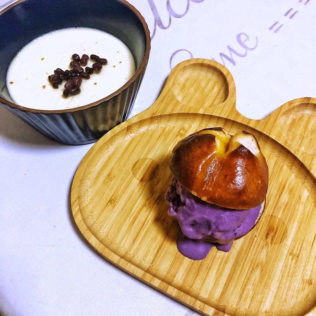 今天吃:双皮奶 碱水夹蓝莓羊奶酪冰激凌