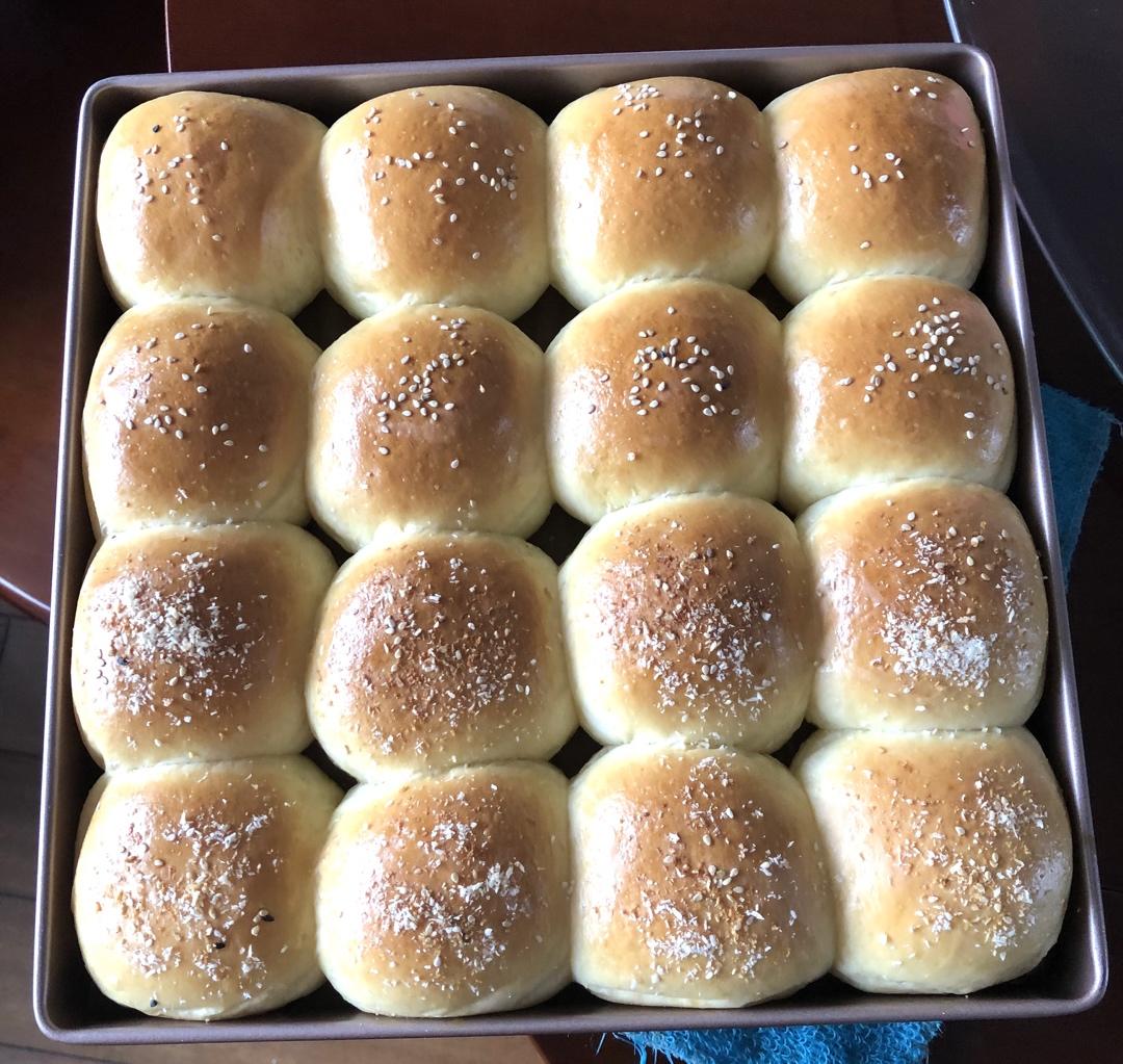 昨天做了牛奶小餐包,鸡蛋加牛奶一共200克,今天早上:鸡蛋牛奶一共110克,椰浆100克,奶粉加了10克,然后就有了椰浆牛奶小餐包。
