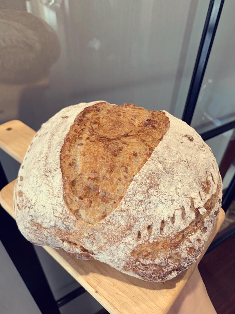 这次做了全麦的,亚麻籽和核桃的融入真的是绝配,比上次的更湿软,到第三天还是柔软没有干掉