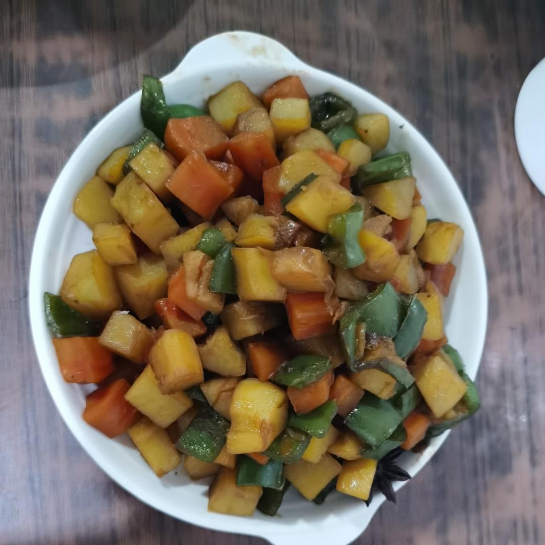 三彩蔬菜丁|爸爸厨房 VOL.017--土豆、彩椒、胡萝卜、八角