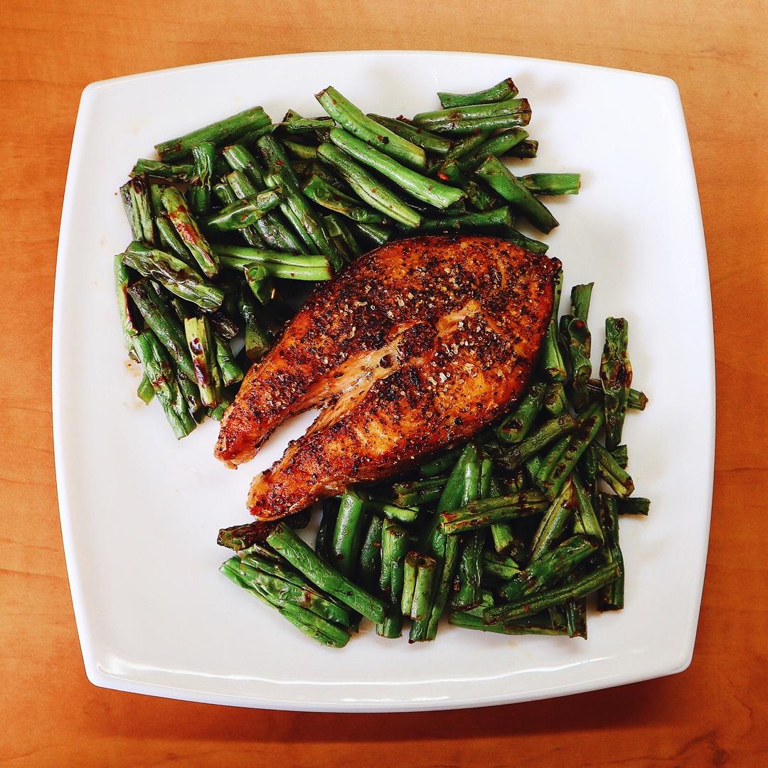 无油烤三文鱼配花菜泥