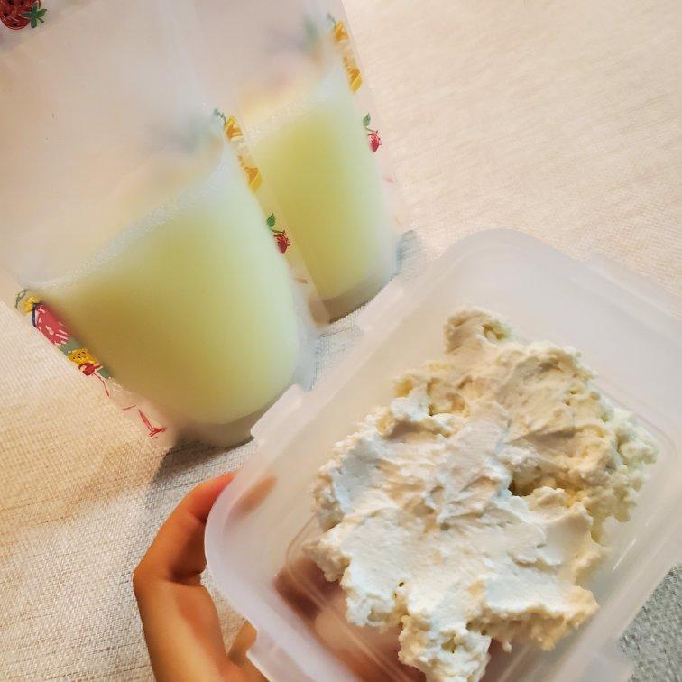 MissGaO 做过 自制茅屋奶酪+快手吃法推荐(cottage cheese)丨健康·零食 #晚餐•2020年7月7日# 900ml鲜奶+40g柠檬汁,出了约100g奶酪和840ml乳清。奶酪口感厚实绵密,太棒了吧,还在回味(*^3^)乳清装袋了,明早饮料有了,嘻嘻。 2020-07-07