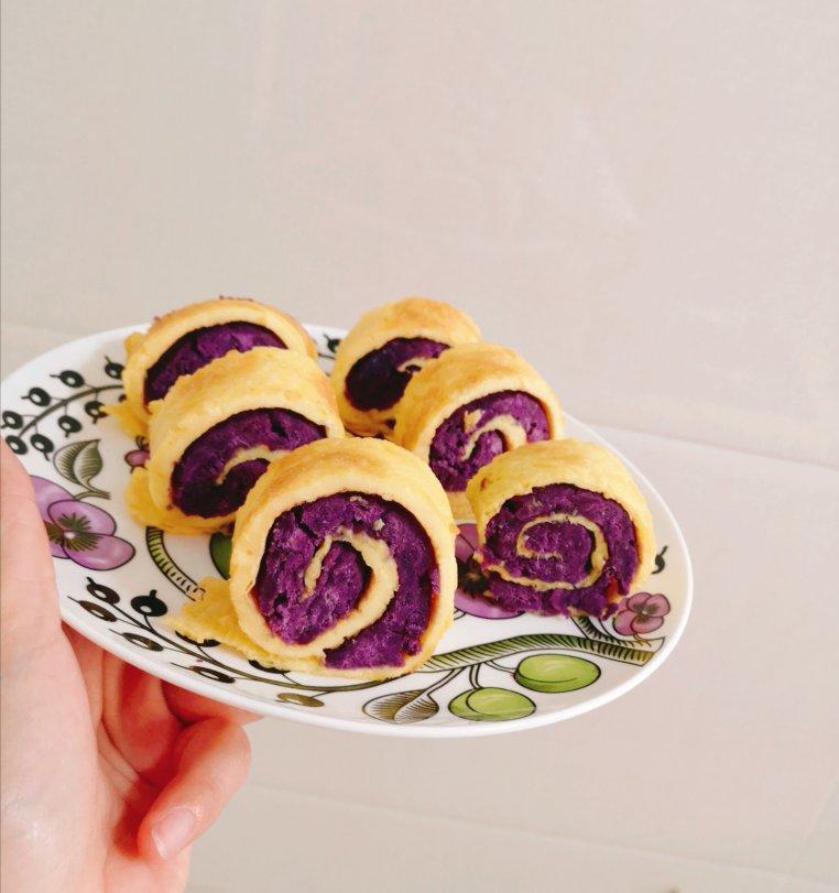 【紫薯鸡蛋卷】面点厨师教你做低卡低脂美食,快来试试吧。