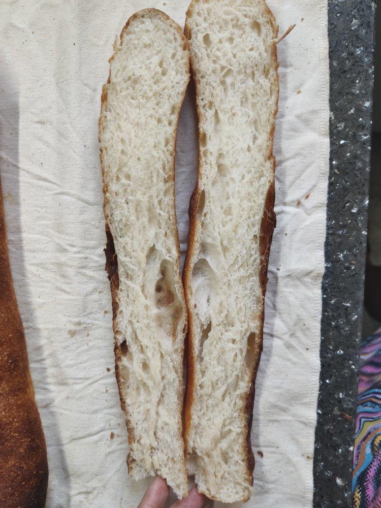 我减半了量,下次一个烤箱只能做法棍不能再混做别的了。否则时间和发酵时间控制不好。下次再试下